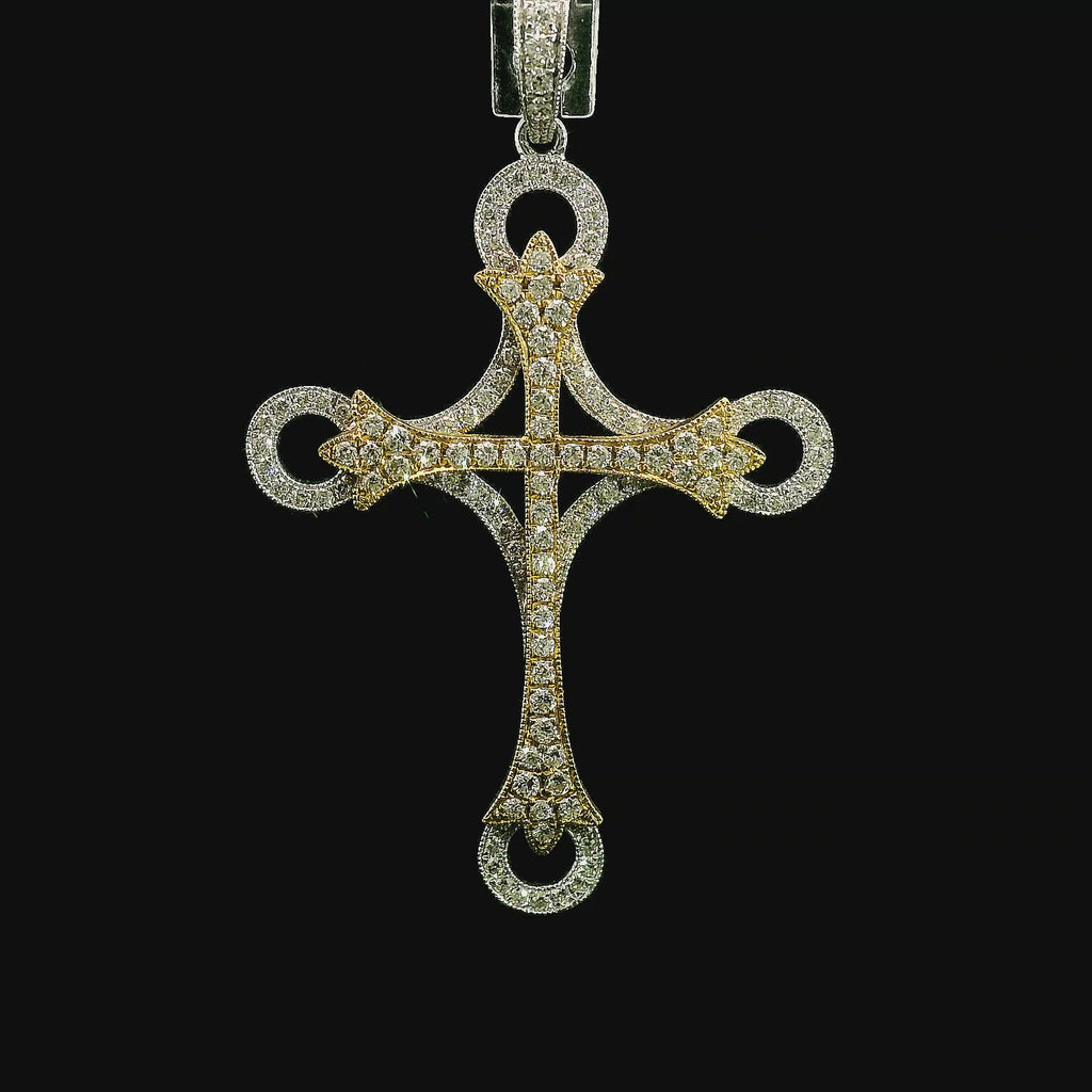 18kt Tu-Tone Gold Natural Diamond Cross Pendant (0.69ct)