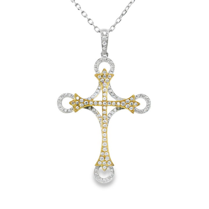 18kt Tu-Tone Gold Natural Diamond Cross Pendant (0.69ct)