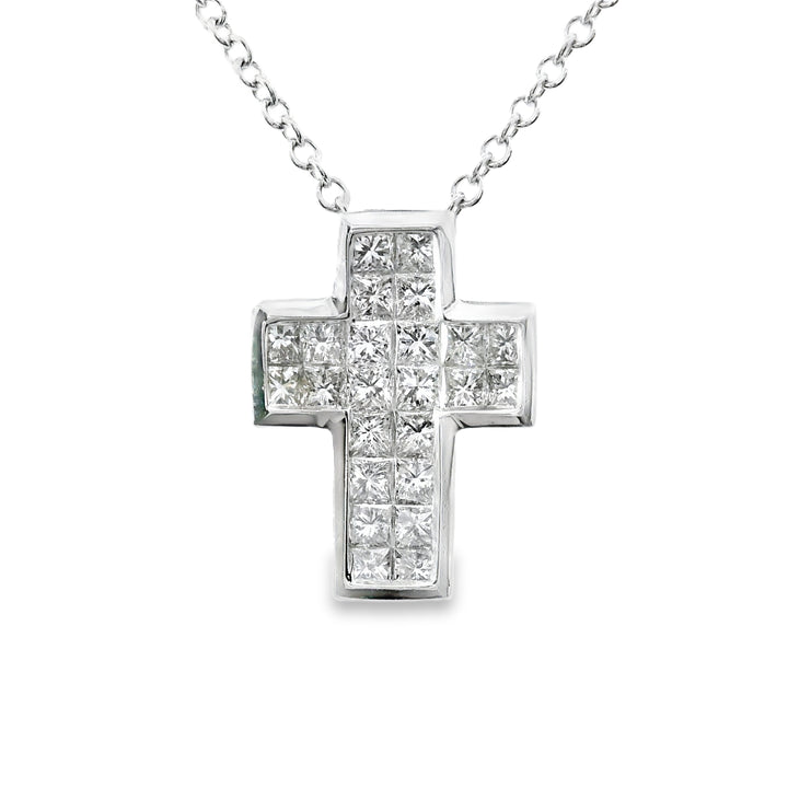 18kt White Gold Natural Diamond Cross Pendant (.89ct)