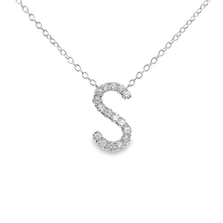 18kt White Gold Natural Diamond Initial "S" Pendant (0.18ct)
