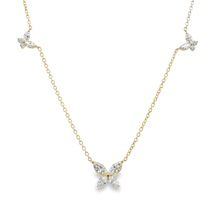 18kt Yellow Gold Natural Round and Marquise Diamond Butterfly Pendant (.81ct)