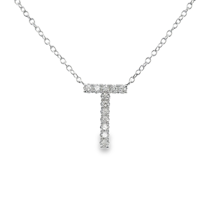 18kt White Gold Natural Diamond Initial "T" Pendant (0.13ct)