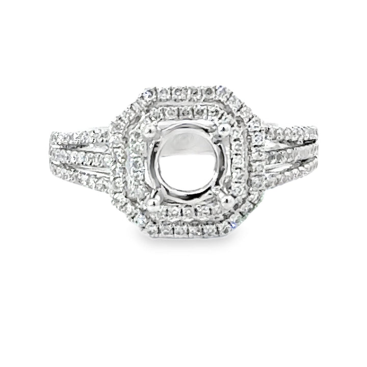 18kt White Gold Double Halo Natural Diamonds Semi-Mount Ring (0.53ct)