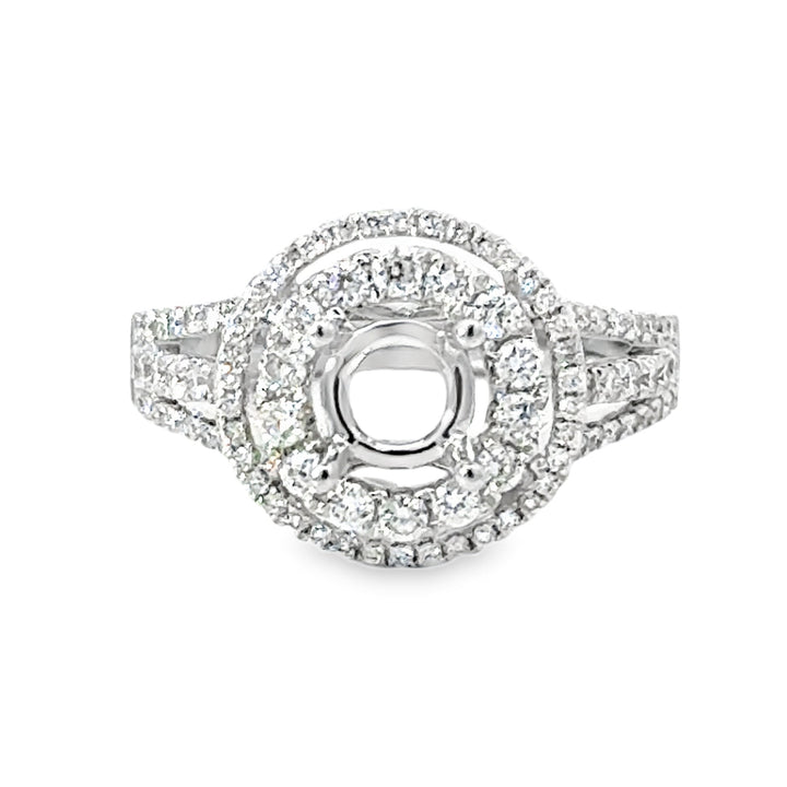 18kt White Gold Double Halo Natural Diamonds Semi-Mount Ring (1.09ct)