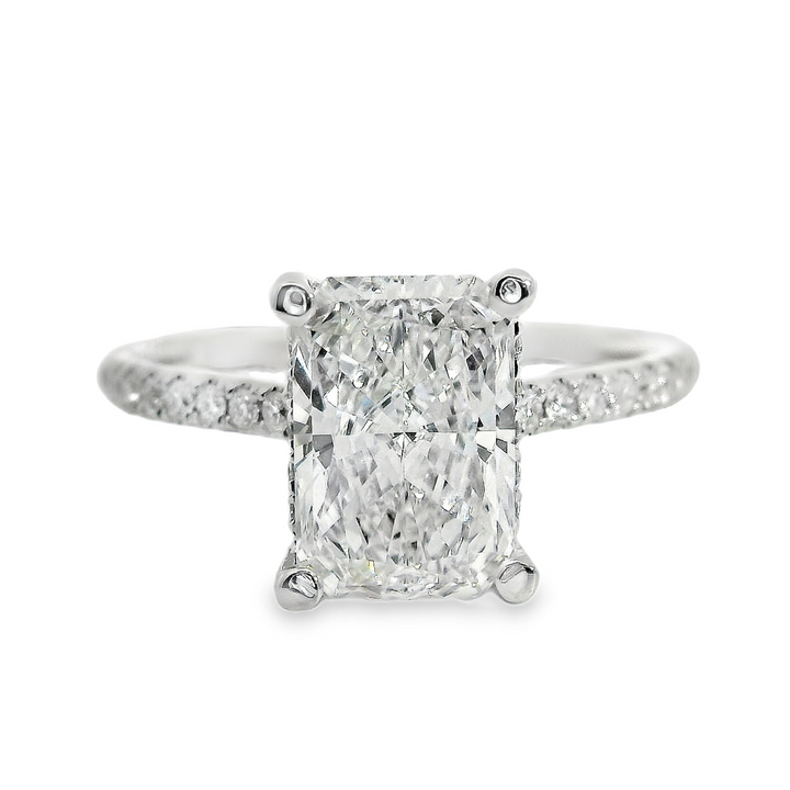 18kt White Lab-Grown Radiant and Natural Round Diamonds Hidden Halo Engagement Ring (2.34ct)