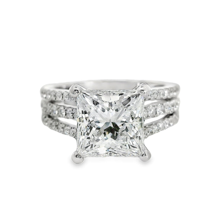 18kt White Gold Prong Set Triple-Shank Lab-Grown Princess and Natural Round Diamonds Engagement Ring (3.64ct)