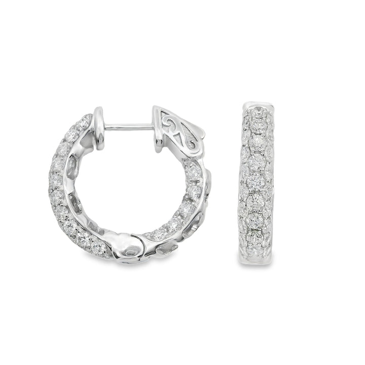 18kt White Gold Round Diamonds Small Hoop Earrings (.81ct)
