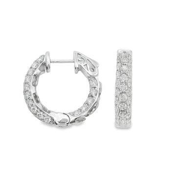 18kt White Gold Round Diamond Small Hoop Earrings (1.31ct)