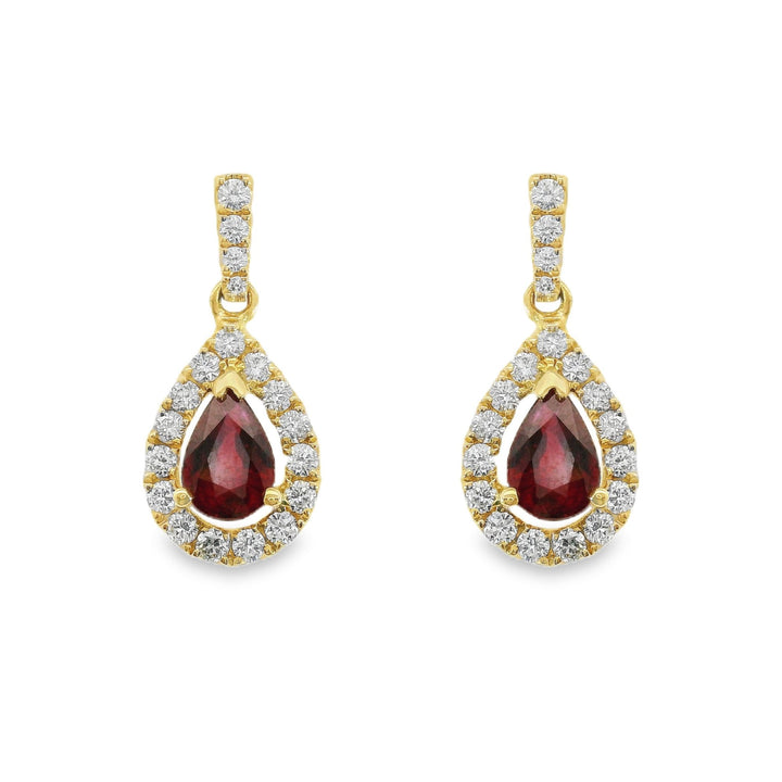 18kt Yellow Gold Pear Rubies and Diamonds Drop Earrings (1.48ct)