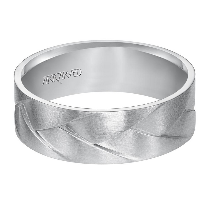 Artcarved 14kt White Gold 7mm Braided Design with Brushed Finish Wedding Band