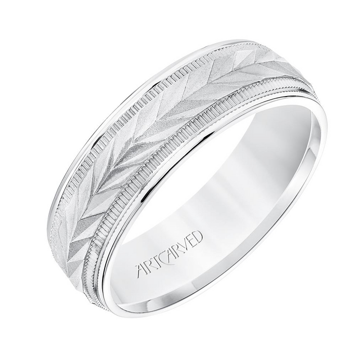 Artcarved 14kt White Gold 6mm Engraved Finish Comfort Fit Wedding Band