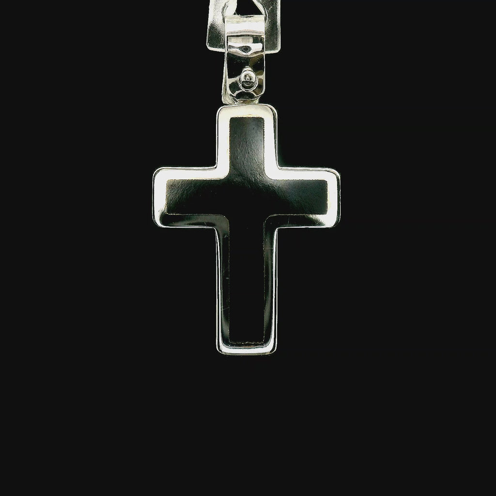 18kt white gold cross with onyx inlay made in Italy, weighing 1.47 grams