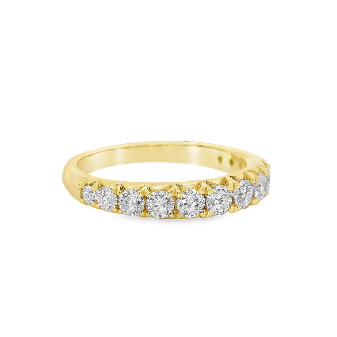 Lady's 18kt White gold wedding ring, weighing 3.39 grams, containing 13 Natural Round Diamonds, weighing 0.79 carats, G color and SI1 clarity.