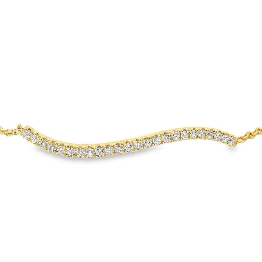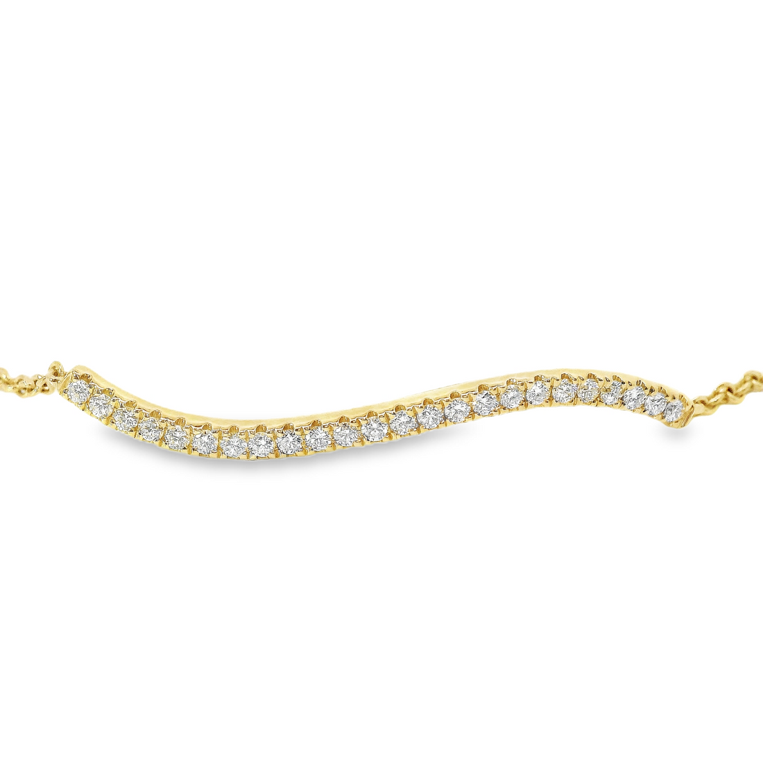 Lady's 18kt Yellow gold Cable Link inch bracelet, containing 24 Round Natural Diamonds, weighing 0.21cts, G color and VS2 clarity.