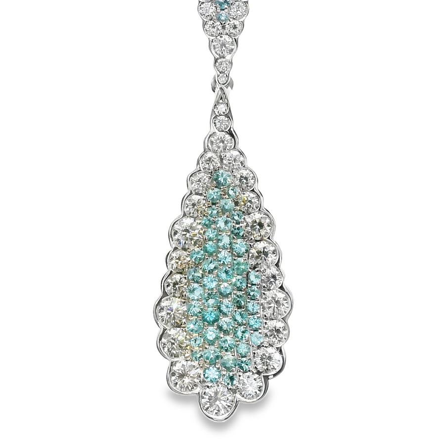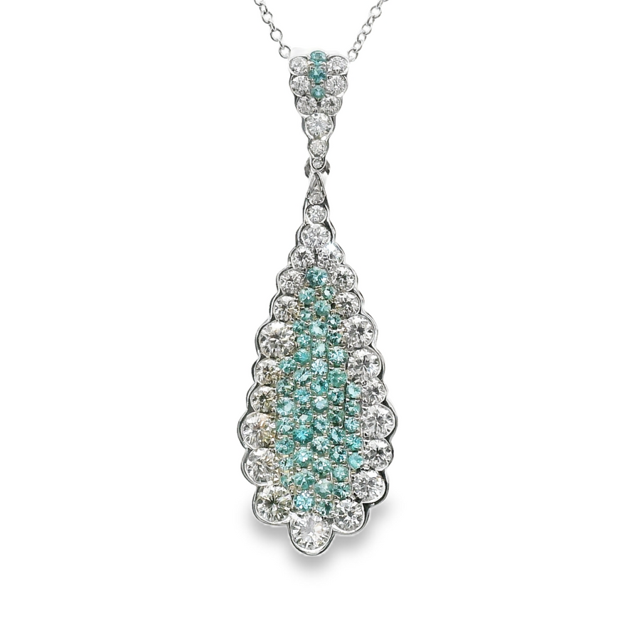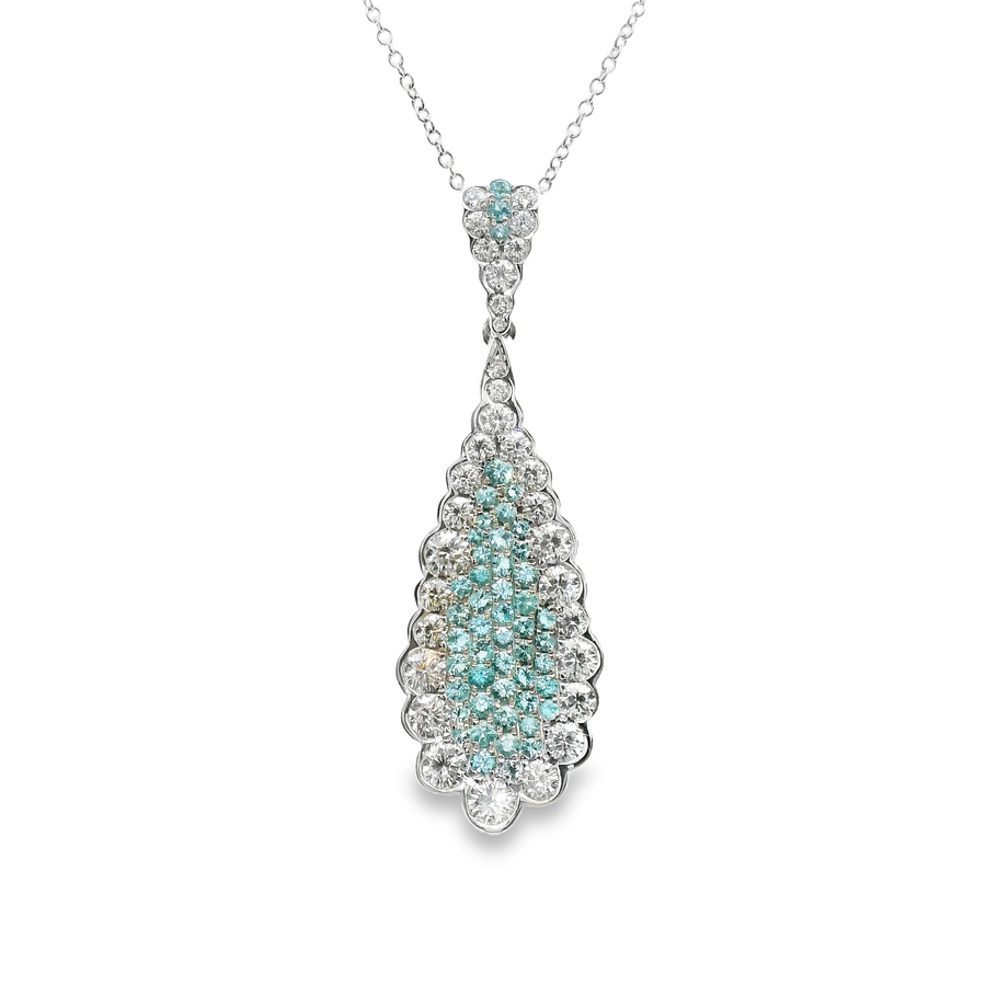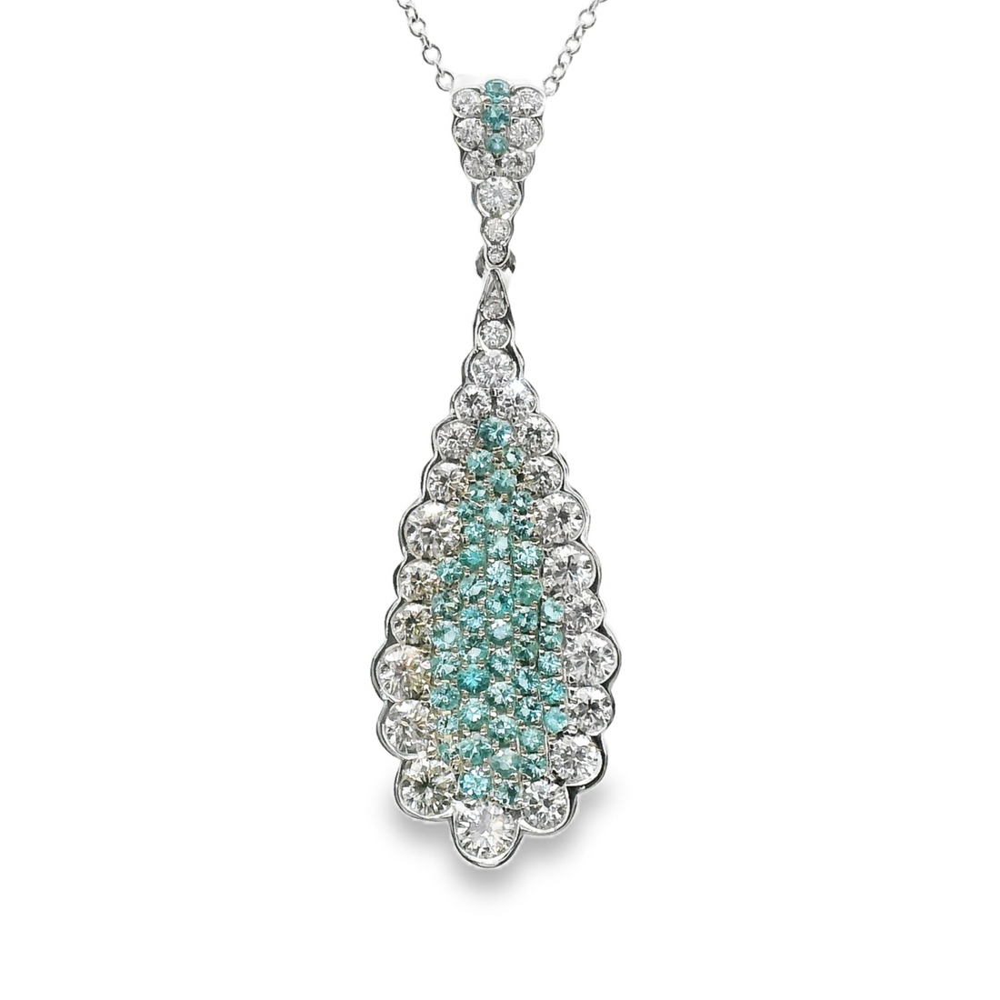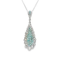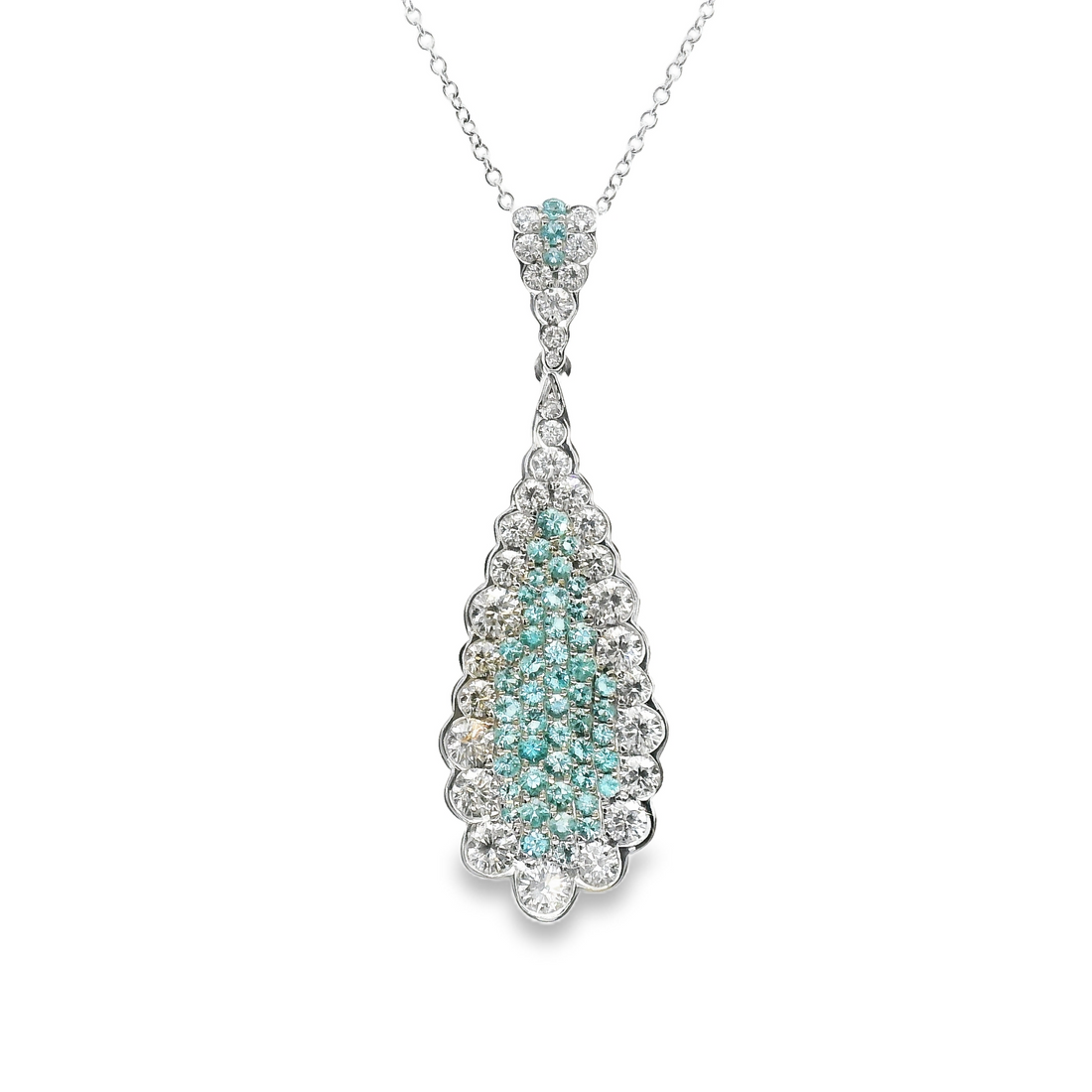 Simon G. 18kt White Gold Natural Round Diamonds and Natural Round Paraiba Tourmaline Drop Pendant (1.66ct)