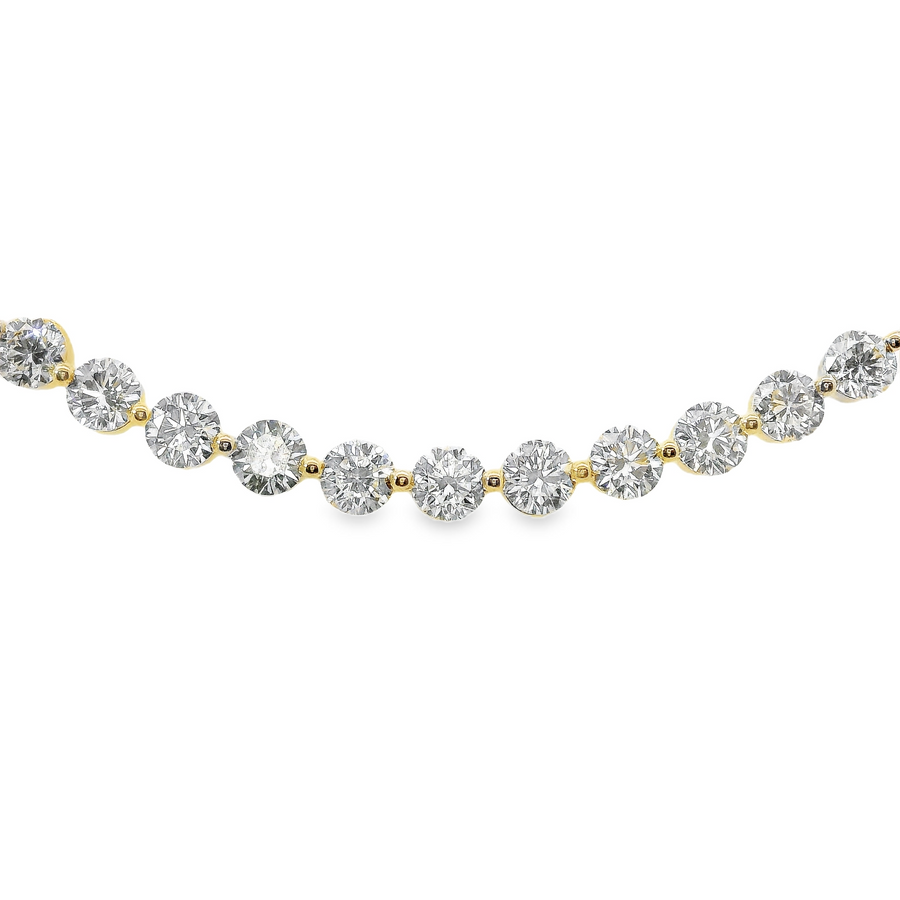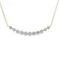 Lady's 18" 18kt Yellow gold diamond pendant, weighing 3.6 grams, containing 11 Natural Round Diamonds, weighing 1.04 carats, G color and VS1 clarity.