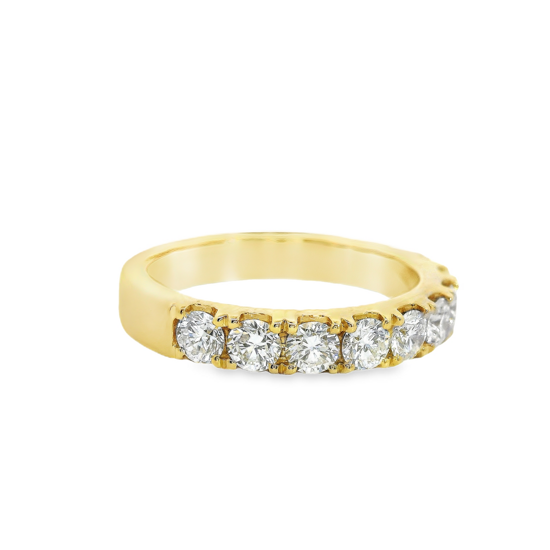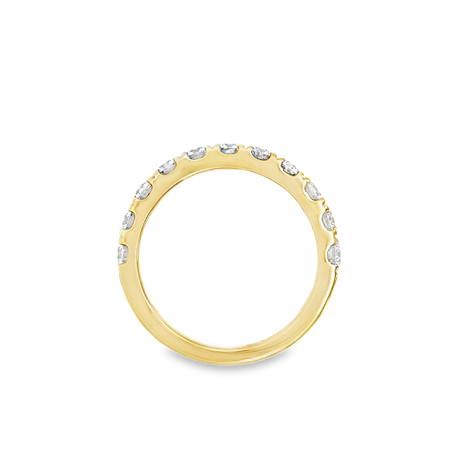 Lady's 18kt Yellow gold wedding ring, weighing 5.06 grams, containing 11 Natural Round Diamonds, weighing 1.21 carats, F color and VS1 clarity,